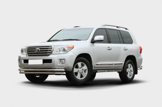 Защита переднего бампера для Toyota Land Cruiser 200 – это двойная труба на бампер из нержавеющей стали диаметром 60/60 мм.