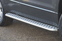 Боковые пороги-подножки сделаны специально для автомобилей Hyundai Tucson, поэтому устанавливаются достаточно просто и без повреждений корпуса. Помимо этого, алюминиевые пороги с листом для Хендай Туксон смотрятся очень стильно и эффектно. Они добавят вашему авто еще больше солидности и внушительности.