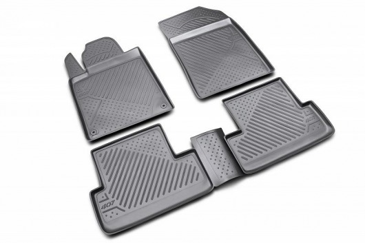 Полиуретановые коврики для автомобиля гладкие, приятные и не пропускают влагу. Черный цвет универсален и подойдет любому авто.