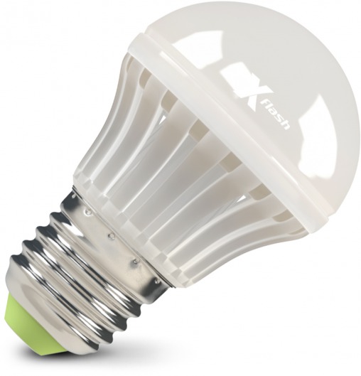 Светодиодная лампа X-Flash Bulb E27 BMC P 4W предназначена для общего освещения. Колба матовая, имеет форму полусферы. По форме, цоколю и размерам соответствует аналогичным люминесцентным лампам и лампам накаливания. Данная модель — первая лампа с углом освещения 360º, благодаря чему корпус светится со всех сторон. Она рассчитана на напряжение 220 В. Мощность диодной лампы X-Flash — 4 Вт., яркость — 450 Лм, а температура свечения  3000 K (это желтый свет).