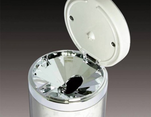 Пепельница с подсветкой FE-25 оснащена специальным фотоэлементом, который провоцирует срабатывание подсветки исключительно при плохой освещенности в салоне. Голубая подсветка срабатывает при открытии крышки. Крышка в этой модели съемная, что позволяет без особых хлопот ее чистить. Кроме того, внутри предусмотрен держатель сигареты для Вашего удобства. Габариты: высота - 110 мм, диаметр - 70 мм.