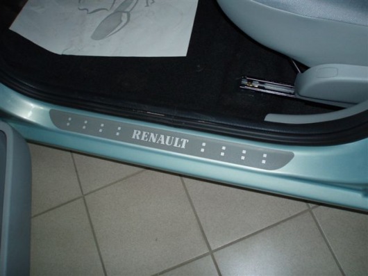 Внутренняя накладка на порог Renault Logan — это аксессуар автомобильного тюнинга, который защищает внутренний порог от механических повреждений при посадке и высадке из машины. Декоративные накладки с рисунком на внутренние пороги предназначены для автомобилей Renault Logan от 2005 г.в.