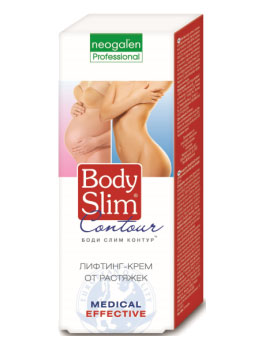 Крем от растяжек Боди Слим Контур стимулирует регенерацию поврежденных клеток дермы; способствует устранению дефицита коллагена и эластина; оказывает тонизирующее и подтягивающее действие на кожу; повышает эластичность и тургор кожи.