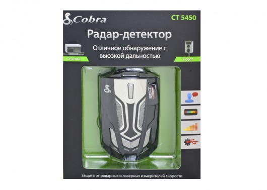Автомобильный радар-детектор Cobra CT 5450 уверенно улавливает сигналы всех известных радарных и лазерных измерителей скорости. Не скроются от него и «неуловимые» Стрелка-СТ и Робот.
