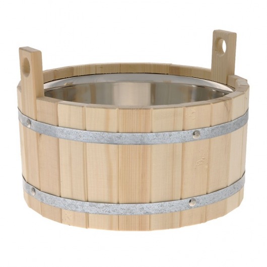 Она прекрасно подойдет для замачивания веника или других банных процедур. Для более удобного использования шайка имеет по бокам две небольшие ручки. Внутри шайки располагается вкладка из нержавеющей стали.
