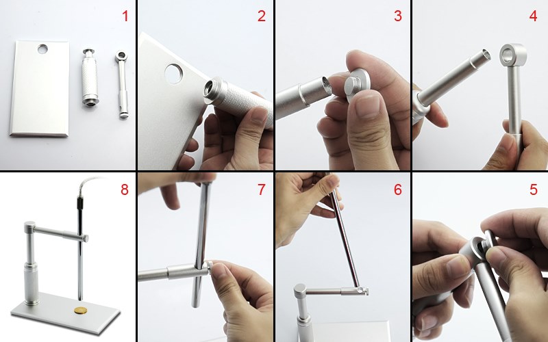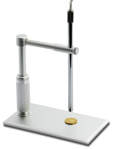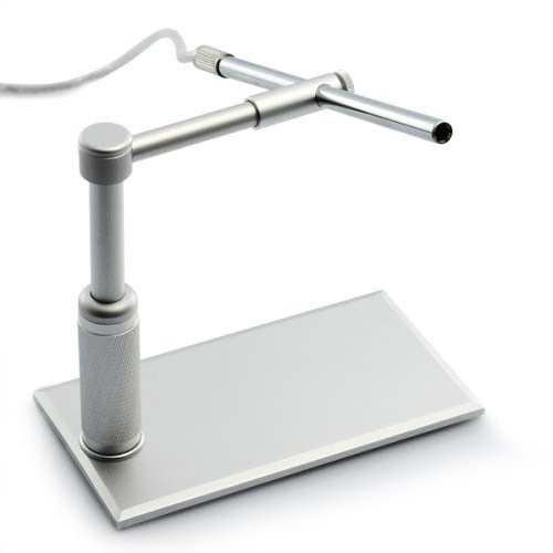 Форма корпуса позволяет удобно держать микроскоп в руке и изучать предметы под любым углом зрения даже в труднодоступных местах. Устойчивый кронштейн из металла, который идет в комплекте с микроскопом, имеет простую схему крепления, что позволяет быстро подготовить микроскоп к работе и прочно зафиксировать прибор в выбранном положении.