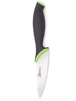 Нож Apollo "Cortar" изготовлен из высококачественной нержавеющей стали. Эргономичная рукоятка выполнена из высококачественного пищевого прорезиненного пластика черно-зеленого цвета. Рукоятка не скользит в руках и делает резку удобной и безопасной.