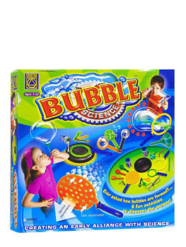 Набор предлагает провести шесть занимательных опытов, которые помогут малышу получить ответы на интересующие его вопросы, связанные с мыльными пузырями: