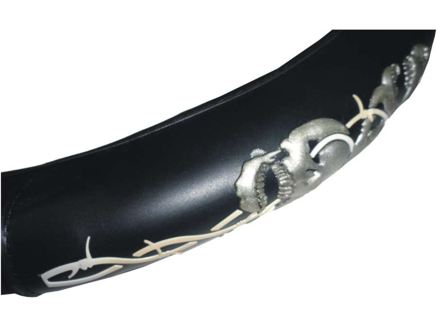 Оплетка на руль PSV SKULL M — превосходный вариант, если вы хотите подчеркнуть свою индивидуальность, не боитесь смелых идей и при этом ищете практичную модель, которая будет отвечать функциональным требованиям. Накладка на руль из искусственной кожи подарит вам максимально безопасное и комфортное вождение без нежелательных проскальзываний рулевого колеса и соскальзывания ладоней. А необычный смелый рисунок на боковой стороне чехла сделает салон вашего автомобиля более живым и интересным.