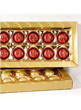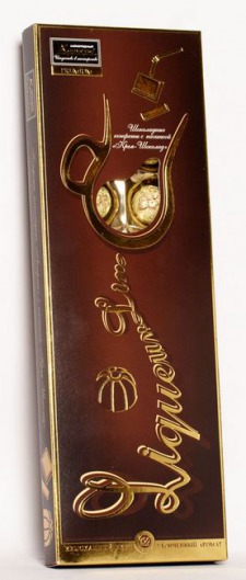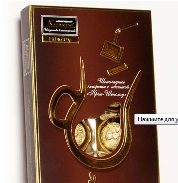 Серия конфет с великолепным вкусом ликерных коктейлей прекрасный подарок для любого человека. В дизайне используются золотые элементы в форме бокалов, а на противоположной стороне расписаны рецепты домашнего приготовления вкуснейших ликеров.