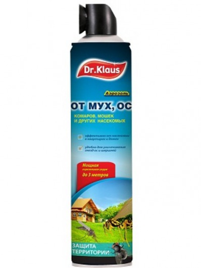 Аэрозоль Dr. Klaus — это универсальное средство для защиты вашего дома от мух, ос, комаров, мошек и других летающих насекомых. Взвешенные в воздухе частички веществ, входящих в состав препарата, моментально воздействуют на нервную систему насекомых и убивают их. Это средство идеально подходит для обработки от насекомых загородных домов и квартир. Мощный распылитель с дальностью действия до 3 метров позволяет без проблем обработать инсектицидом даже самые труднодоступные места (плинтусы, щели).