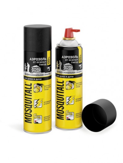 Аэрозоль MOSQUITALL «Профессиональная защита. Для дома и дачи» — это мощное инсектицидное средство  для уничтожения ос и осиных гнезд. Действует мгновенно на безопасном расстоянии 6 метров, что практически исключает риск укусов. Благодаря особому составу, уже однократное использование аэрозоля приведет к полному уничтожению ос в гнезде, при условии соблюдения всех правил.