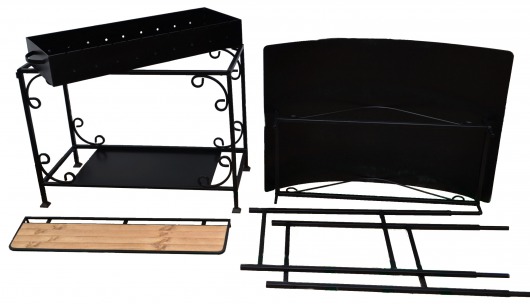 Благодаря разборной конструкции из 3-х частей (жаровня, нижнее основание с дровницей и верхнее основание с крышей), переносить мангал с навесом значительно легче. Более того, его без проблем можно перевозить в автомобиле. При этом разборный кованый мангал для дачи максимально устойчив, так что случайно опрокинуть жаровню исключено.