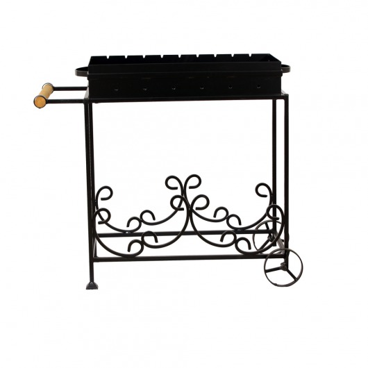 Кованый мангал для дачи МС-3 — простая и удобная модель, которая не только прекрасно впишется в дизайн любого загородного участка, но и пригодится во время пикника. Разборный кованый мангал состоит всего из 2-х частей: ящика жаровни и металлической стойки — складывать его просто, быстро и удобно. А благодаря двум небольшим металлическим колесам и удобной деревянной ручке, передвигать уже установленный мангал в разы проще. Размеры мангала в сложенном состянии не превышают метра, а значит, этот переносной мангал легко поместится в любом багажнике.