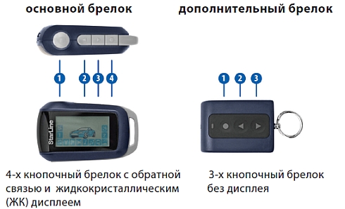 В брелоках реализован интуитивно понятный принцип управления. Все пиктограммы на брелоке на русском языке. Светодиодная подсветка обеспечивает комфортную работу с информацией на дисплее
