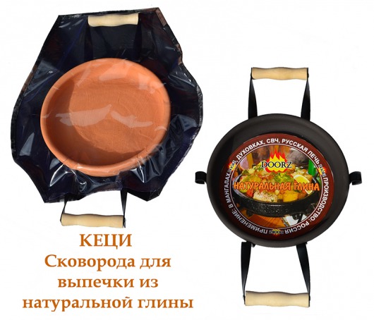 Сковорода Кеци изготовлена из натуральной экологически чистой природной глины. Глиняную сковороду для выпечки можно использовать в духовке, СВЧ-печи и в русской печке. А за счет специальной металлической подставки вы сможете готовить в Кеци вкусные и здоровые блюда прямо на мангале.