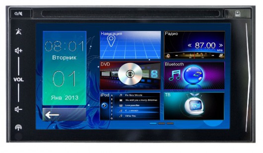 Данная магнитола считывает большинство самых востребованных форматов файлов: MP3, WMA, MPEG1/2, MPEG4, JPEG, GIF, BMP. Это даст возможность интересно провести время за просмотром кино, фотографий, видеоклипов и мн.др. Отличное качество изображения обеспечит встроенный сенсорный 6,5-дюймовый дисплей с разрешением 800х480 пикселей. Также экран является элементом управления автомагнитолой, но для максимально комфортного и безопасного использования устройства, рекомендуется произвести штатное подключение к кнопкам на рулевом колесе.