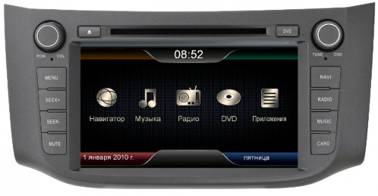 Штатная автомагнитола для Nissan Sentra имеет слоты для подсоединения флешек, iPod, iPhone, SD карт памяти, а DVD привод способен считывать файлы со всех типов компакт дисков. Дополнительно есть возможность подключить различные внешние устройства, в частности, камеру заднего вида, которая создаст условия для благополучной парковки. Отображая картинку с обстановкой позади, она обеспечит видимость всех препятствующих объектов, которые могут стать причиной удара или столкновения. Встроенный Bluetooth дает возможность общения по мобильному телефону в режиме громкой связи, что гораздо удобнее и безопаснее во время управления автомобилем.