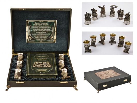 Набор стопок-перевертышей в ларце с книгой "Русская охота"