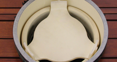 Чтобы использовать гриль Big Green Egg Medium для томления или запекания блюд на непрямом огне, необходим керамический рефлектор. Он отсекает от продуктов огонь, исходящий от углей, и превращает гриль в печь. Используйте рефлектор совместно с гриль-решетками.