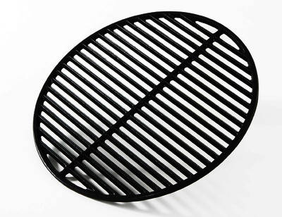 Круглая чугунная решетка идеально подходит для керамических грилей Big Green Egg Mini — она быстро нагревается до высоких температур и в течение долгого времени поддерживает тепло, не выделяя при этом никаких токсичных веществ и посторонних запахов. Решетка имеет 2 рабочие поверхности: одна сторона гладкая, вторая ребристая (для того, чтобы на ваших блюдах-гриль появлялись аппетитные темные полоски).