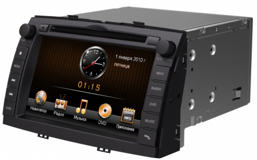 В автомагнитоле присутствует модуль GPS, а значит есть возможность воспользоваться функцией навигации. Благодаря программному обеспечению «Навител», установленному на модуль, вам будет предложен оптимальный вариант маршрута, а затем на дисплей будет выведен путь, по которому следует двигаться. Это гарантирует, что до заданного адреса вы доберетесь благополучно. Чтобы появились доступ в Интернет и функция отображения кнопок, нужен модем Intro GPS 3G. Модем не входит в стандартную комплектацию и приобретается отдельно.