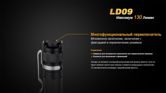 Модель ручного фонаря Fenix LD09 Cree XP-E2 LED пользуется широкой популярностью среди любителей загородного отдыха. Благодаря компактным размерам, он также нередко используется как осветительный прибор на каждый день, который всегда можно носить с собою в кармане или в качестве брелока.