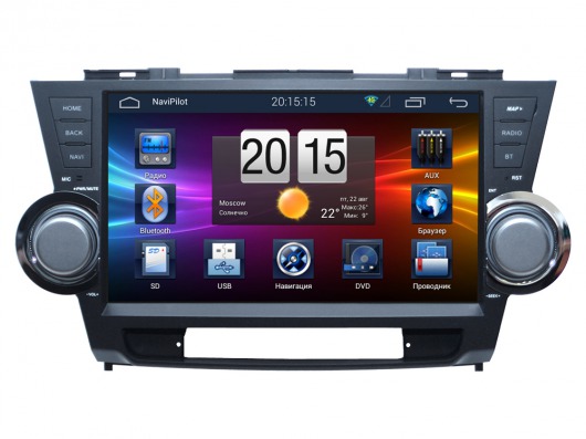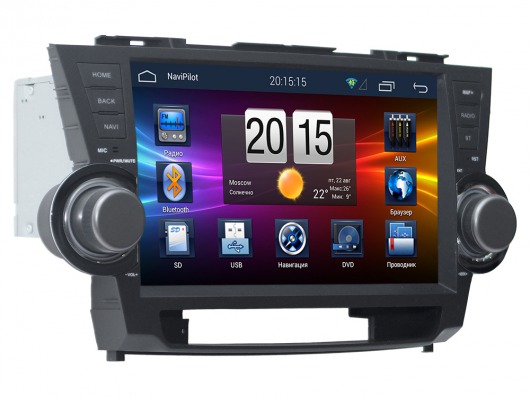 NaviPilot DROID 2 для для Toyota Highlander от 2011 до 2014 года выпуска устанавливается в штатное место приборной панели и отлично сочетается с интерьером вашего автомобиля. Все разъемы выполнены по технологии "pin-to-pin", устройство монтируется без нарушения штатной проводки, тем самым сохраняя гарантию на ваш авто. Уникальность штатного головного модуля заключается в том, что он представляет собой мультифункциональную систему с обширными возможностями диагностики. Эта система удачно сочетает в себе GPS-навигацию и компьютерное устройство с доступом в Интернет.
