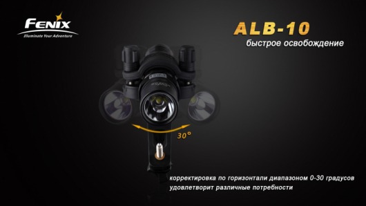 Велосипедное крепление Fenix ALB-10 позволяет регулировать направление света от закрепленного фонаря, поворачиваясь в диапазоне 30° по горизонтали. Кроме того, во время остановок фонарь можно быстро отсоединить от велосипеда и использовать в качестве ручного.
