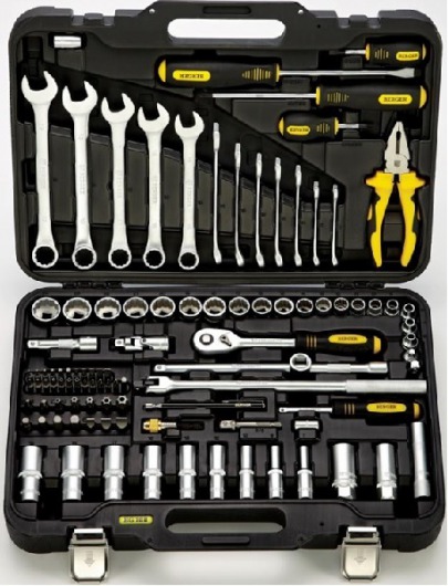 Кроме того, чемодан с инструментом оснащен таким крепежом, благодаря которому все предметы (даже самые мельчайшие – например, биты) остаются на своих местах и при сильной тряске кейса. Но в то же время все инструменты очень легко достаются из пазов. Вам не придется терять время, чтобы достать тот или иной ключ. Просто открыли чемоданчик, нашли необходимый размер гаечного ключа, легко достали и пошли работать. Это очень удобно!