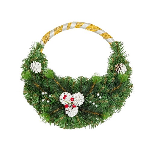 Удивительно красивый новогодний венок Лоза принесет в ваш дом или офис новогоднее настроение и будет очень выгодно смотреться в интерьере. Все такие изделия изготавливаются вручную, что делает их поистине уникальными и неповторимыми. На рождественском венке имеются еловые шишки и веточки рябины, такие аксессуары придают некоторую изюминку гирлянде.