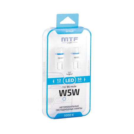 Светодиодные лампы MTF-Light W5W/T10 5000K с матовой линзой – такие лампы работают намного эффективнее, характеризуются более мощной светоотдачей. И все это – без применения радиатора.