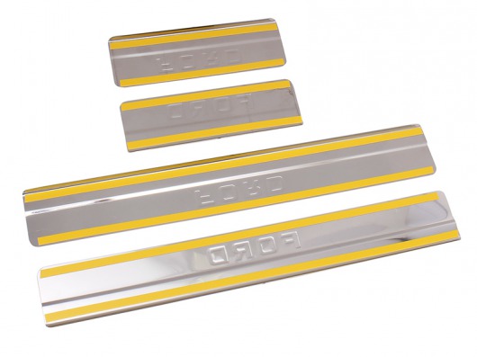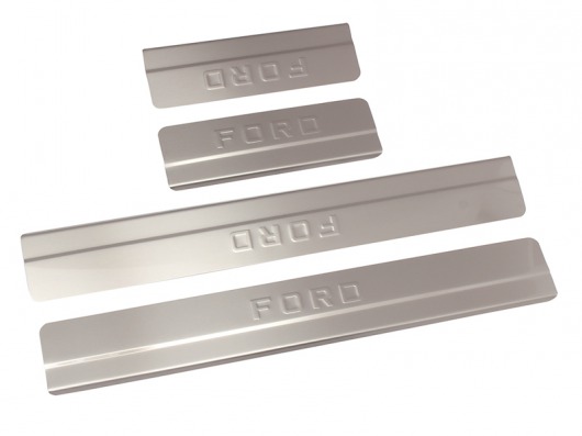 Накладки на металлические пороги дверей Форд Фокус 3 с логотипом авто не только обеспечивают защиту верхней и боковой поверхности внутреннего порога, но и отлично вписываются в интерьер автомобиля, подчеркивая его стиль и индивидуальность. C монтажом проблем не возникнет: установка накладок на внутренний порог для Ford Focus 3 производится на штатные места с помощью скотча 3M.