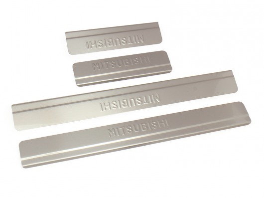 Накладки на металлические пороги дверей Митсубиси Аутлендер с логотипом авто не только обеспечивают защиту верхней и боковой поверхности внутреннего порога, но и отлично вписываются в интерьер автомобиля, подчеркивая его стиль и индивидуальность. C монтажом проблем не возникнет: установка накладок на внутренний порог для Mitsubishi Outlander производится на штатные места с помощью скотча 3M.