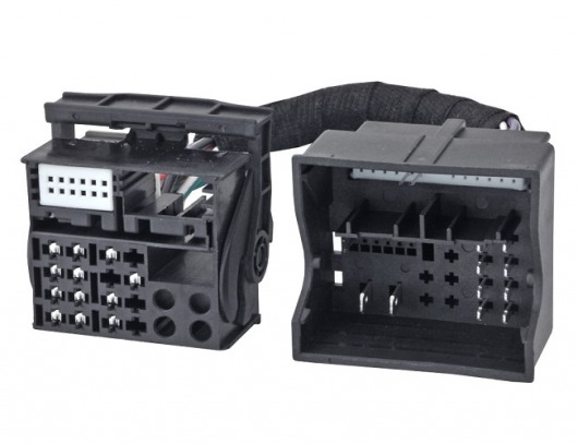 Переходник позволяет подключить магнитолу, предназначенную для автомобилей VW 2003 м.г. (старый разъем), к автомобилю VW 2015 м.г. (с новым разъемом)