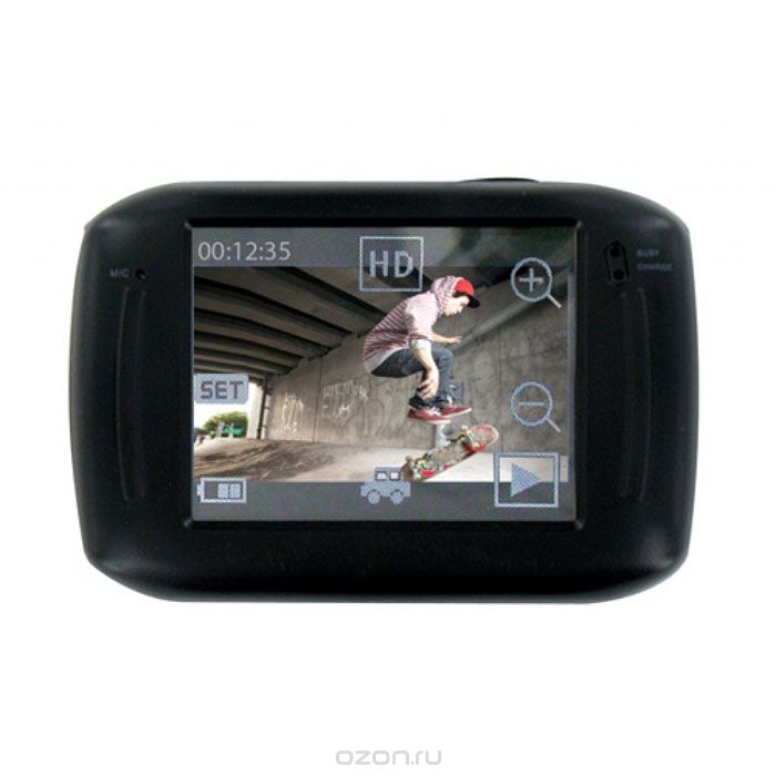 • Диагональ сенсорного дисплея экстремальной камеры составляет всего 2,4 дюйма, но с его помощью очень удобно управлять устройством, а также просматривать видео или фотографии.
