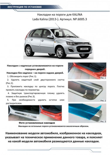 Данные накладки на внутренние пороги «Риваль» разработаны специально для автомобилей Lada Kalina от 2013 г.в. и полностью повторяют их геометрию. Кроме того, накладки порогов двери Rival очень легко и быстро устанавливаются. И при этом надежно крепятся за счет плотного прилегания морозостойкого скотча.