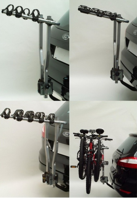 Багажник для велосипедов легко устанавливается на шар прицепного устройства. Крепление фиксируется без боковых ремней. Изготовлен багажник из стальных усиленных труб, что обеспечивает более высокую прочность, в том числе при езде по бездорожью.