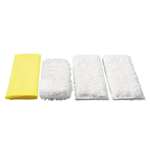 Комплект микроволоконных салфеток для кухни Kärcher предназначен для пароочистителя Kärcher DE 4002. Комплект поставки включает 3 салфетки различного назначения и 1 обтяжку. Обтяжка изготовлена из мягкого плюша  и предназначена для ручной насадки. С ее помощью вы сможете удалить стойкие загрязнения. Две мягкие плюшевые салфетки предназначены для мытья пола на кухне, и одна салфетка необходима для очистки предметов и поверхностей из нержавеющей стали (моек, смесителей и т.п.).