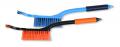 Теплая и непромокаемая ручка на дюрали. Основная щетина - мягкая и распушенная. Вспомогательная - жесткая, для плотного снега. Скребок из 2 лезвий: для больших поверхностей стекла и для углов зеркал.
