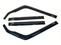 Дефлекторы окон, или ветровики, устанавливаются на окна автомобиля и выполняют сразу несколько задач. Ветровики окон позволяют защитить салон авто от попадания внутрь грязи и пыли, осадков и сильного потока ветра, обеспечивая при этом хорошую вентиляцию. Установка ветровиков на окна хороша ещё и тем, что Вы полностью избавитесь от запотевания стекол, а также будете иметь превосходный обзор в боковые окна даже при плохих погодных условиях.